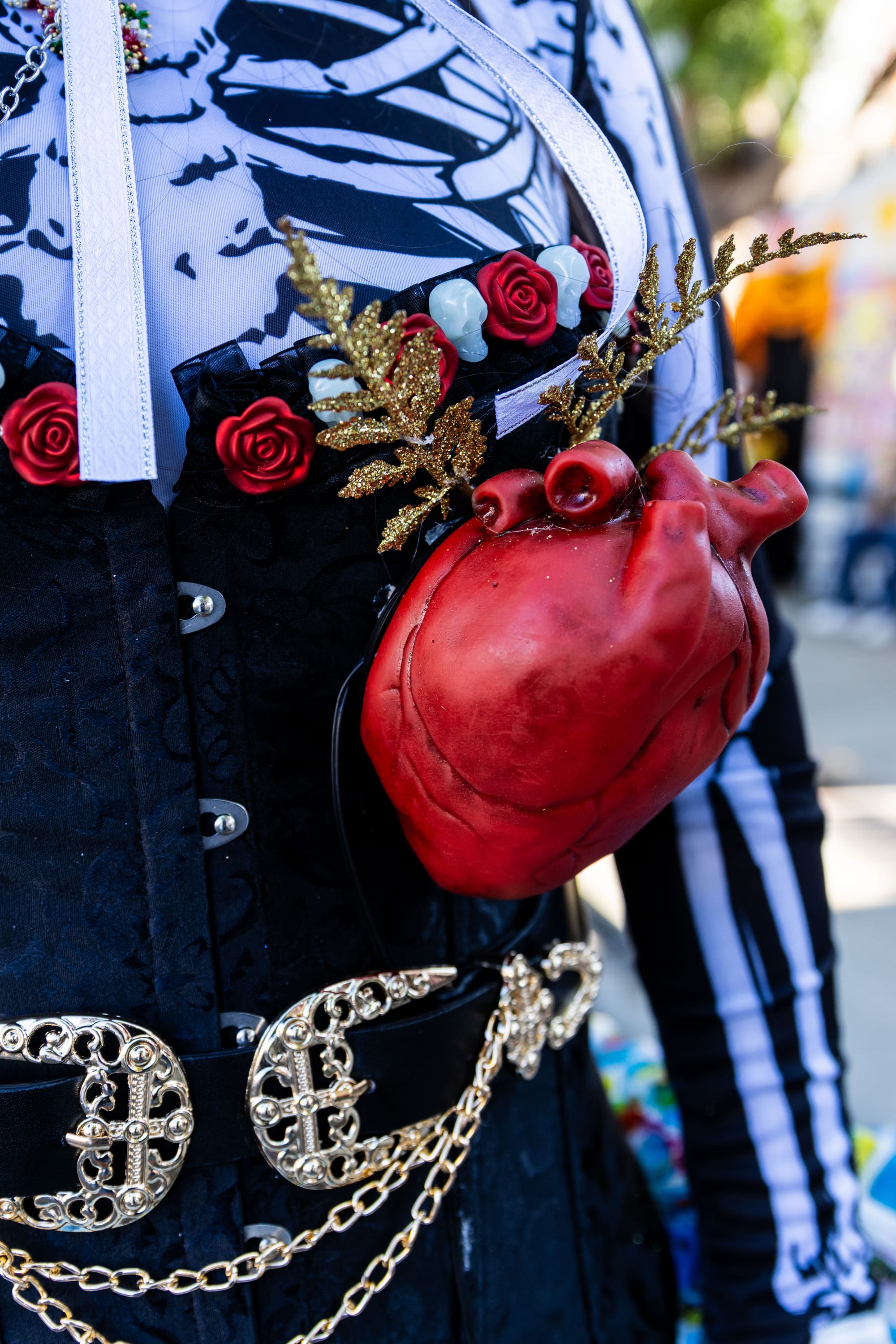 Along Logan Avenue, people from all over San Diego celebrated the Day of the Dead as a community. Ofrendas were erected throughout the festival, allowing anyone to display photos or names of their loved ones who have passed on. Marigold flowers adorned every vendor station, were painted on people's faces and seen in bouquets.
