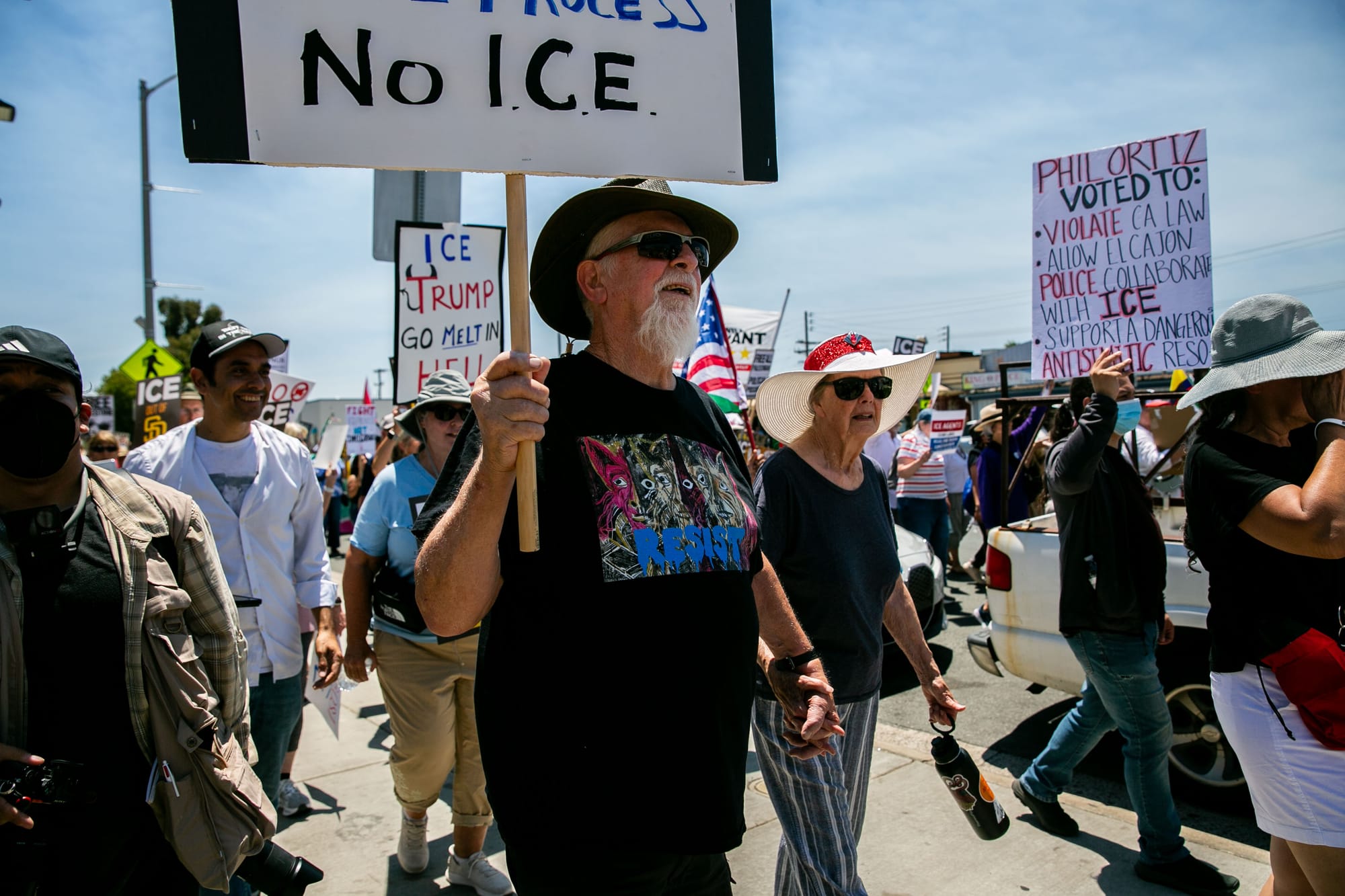 Dozens of San Diegans marched under the scalding heat in El Cajon on Saturday to show support for immigrants in the community.