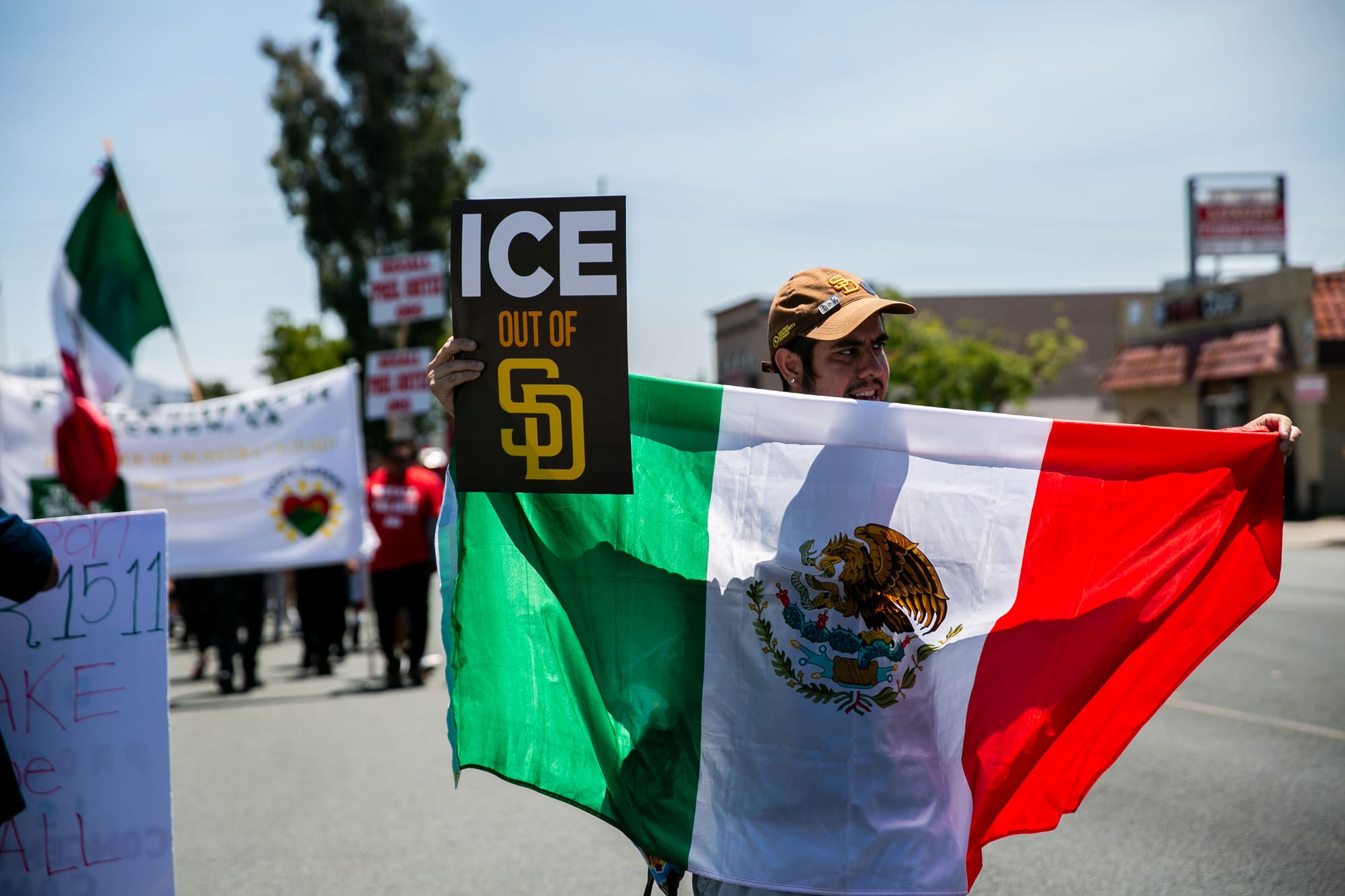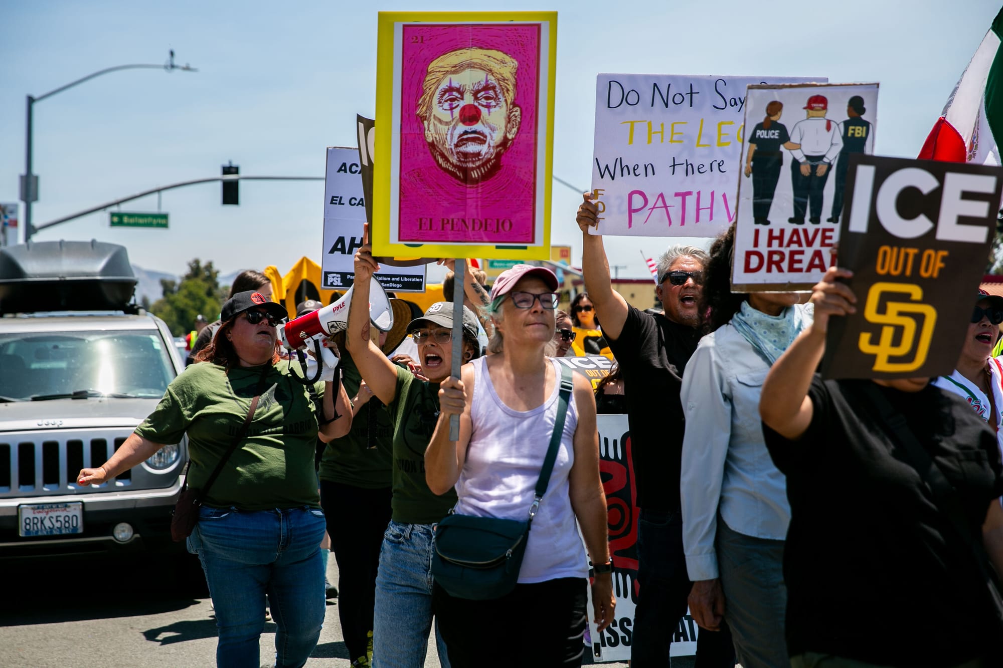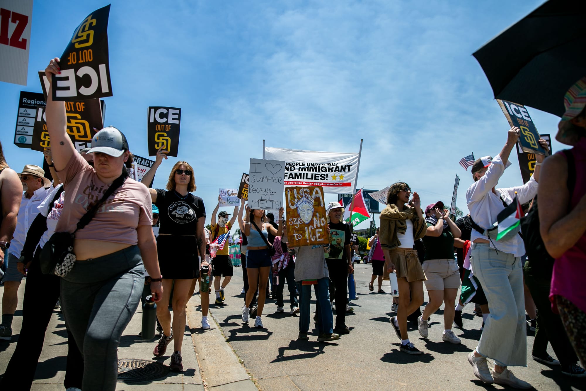 San Diegans marched under the scalding heat to show support for immigrants in the community.