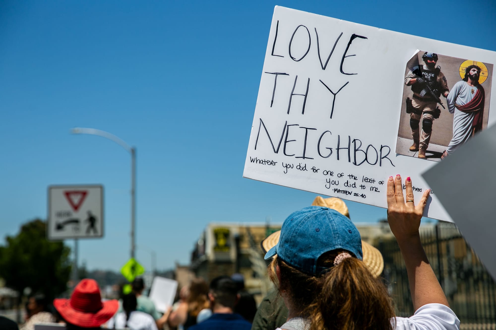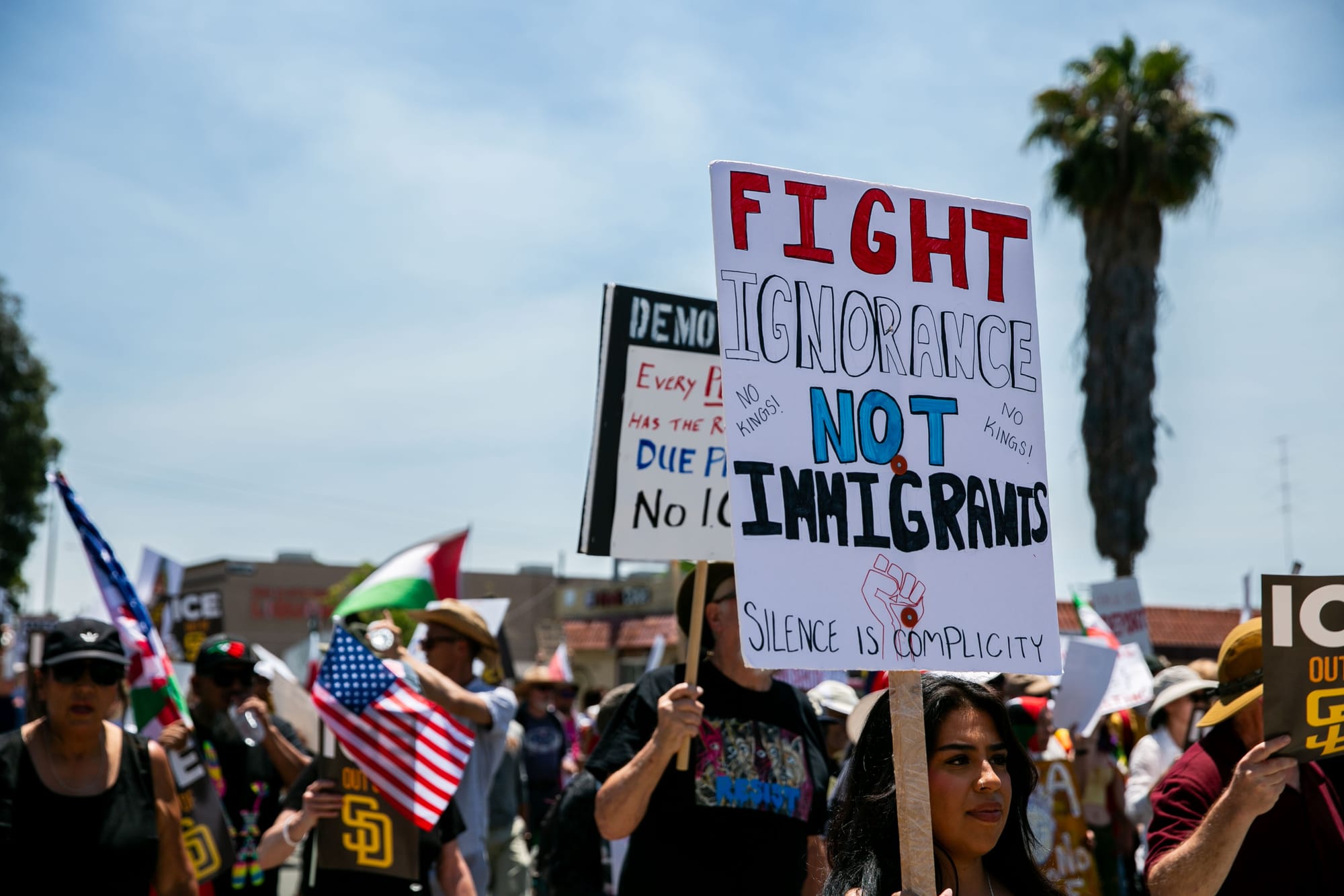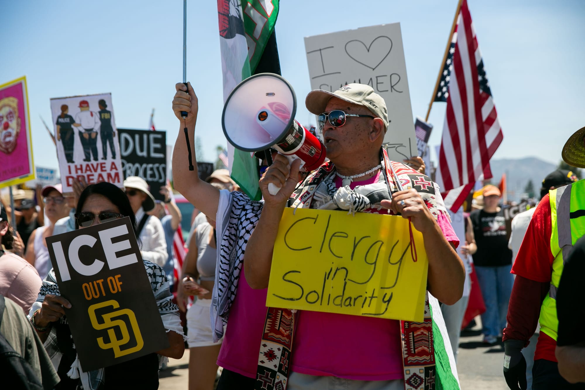 San Diegans marched under the scalding heat to show support for immigrants in the community.