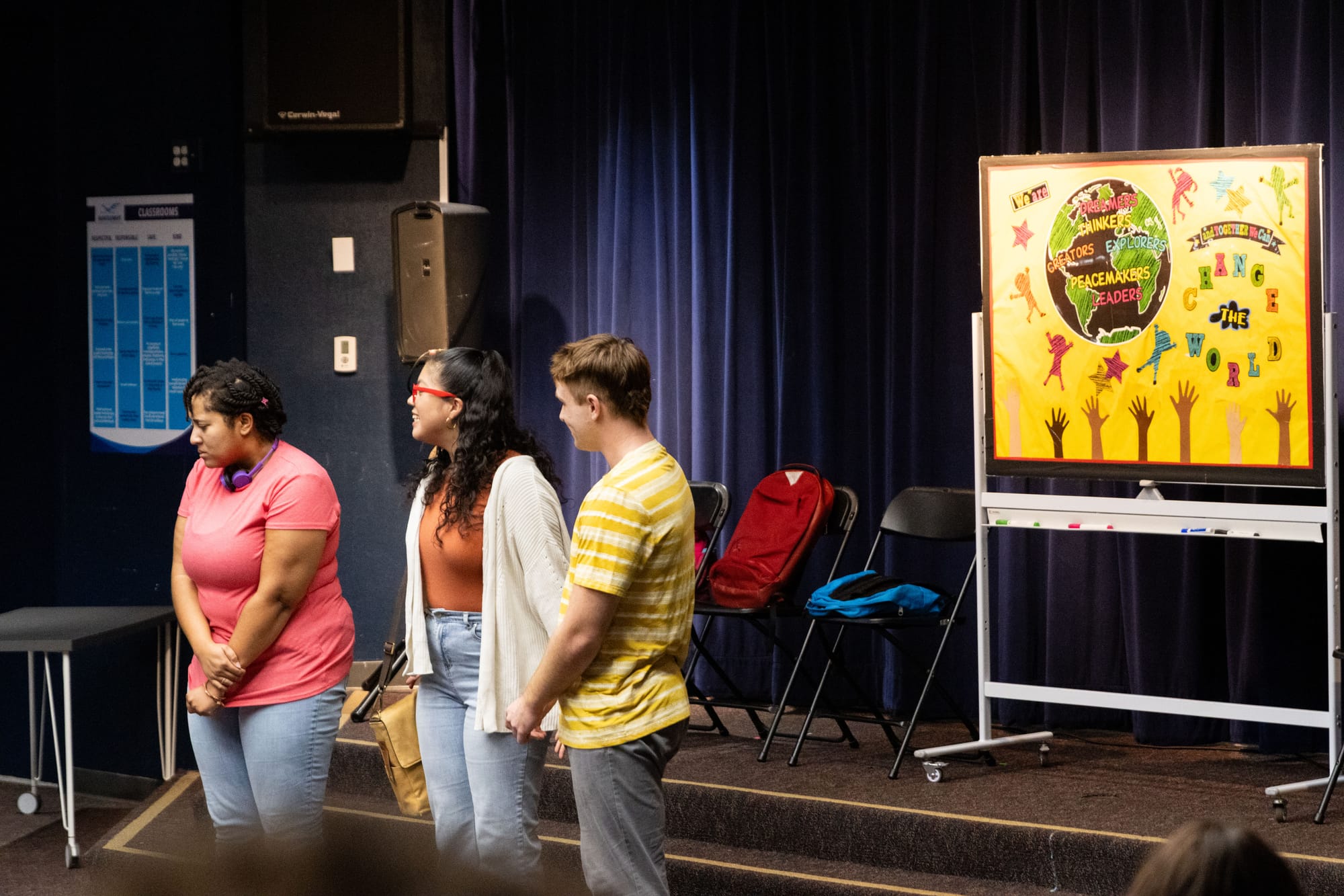 Kids stopped the play during moments when Ryan touched Safa’s hair, when Safa doesn’t tell the teacher why she’s crying, when Jake doesn’t stand up for Safa and when Sarah fails to see that Safa is hurt. During each pause, a student went up and protected Safa with their own words.