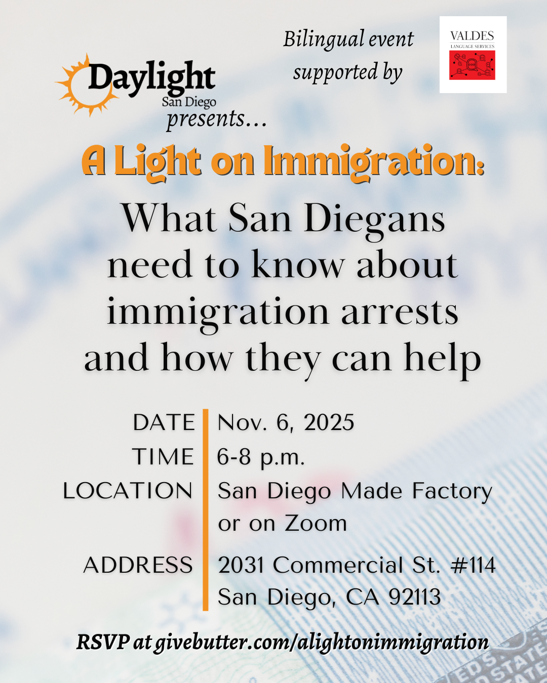 You can attend the event at San Diego Made Factory from 6 to 8 p.m. for free in person or on Zoom, and we will have translators for Spanish speakers thanks to support from Valdes Language Services. Please RSVP online, and please tell your friends and loved ones. Here are flyers in English and Spanish that you are welcome to share with your networks.