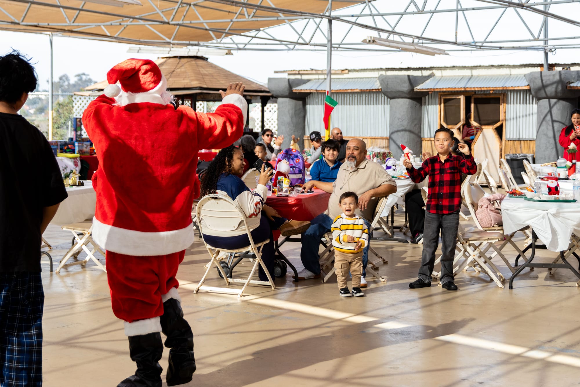 First: Santa arrives at the Sons and Daughters of Guam Club pavilion. Last: Santa gives out free candy to children. Brittany Cruz-Fejeran/Daylight San Diego
