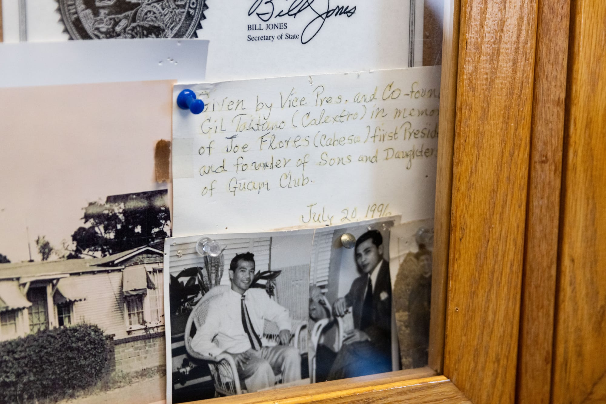 A photo of the Sons and Daughters of Guam Club founders is pinned in a frame inside the clubhouse in Lincoln Park on Saturday, Dec. 13, 2025. Brittany Cruz-Fejeran/Daylight San Diego