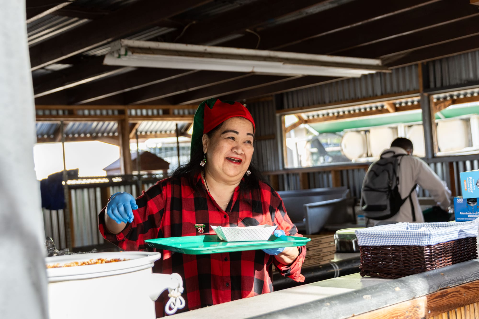 While families enjoyed the party outside the clubhouse, other members inside participated in day two of the nine days of prayer, a Catholic practice that honors the birth of Jesus Christ. This tradition of prayer is widespread on Guam and in the Marianas, so the club holds space for it to continue.