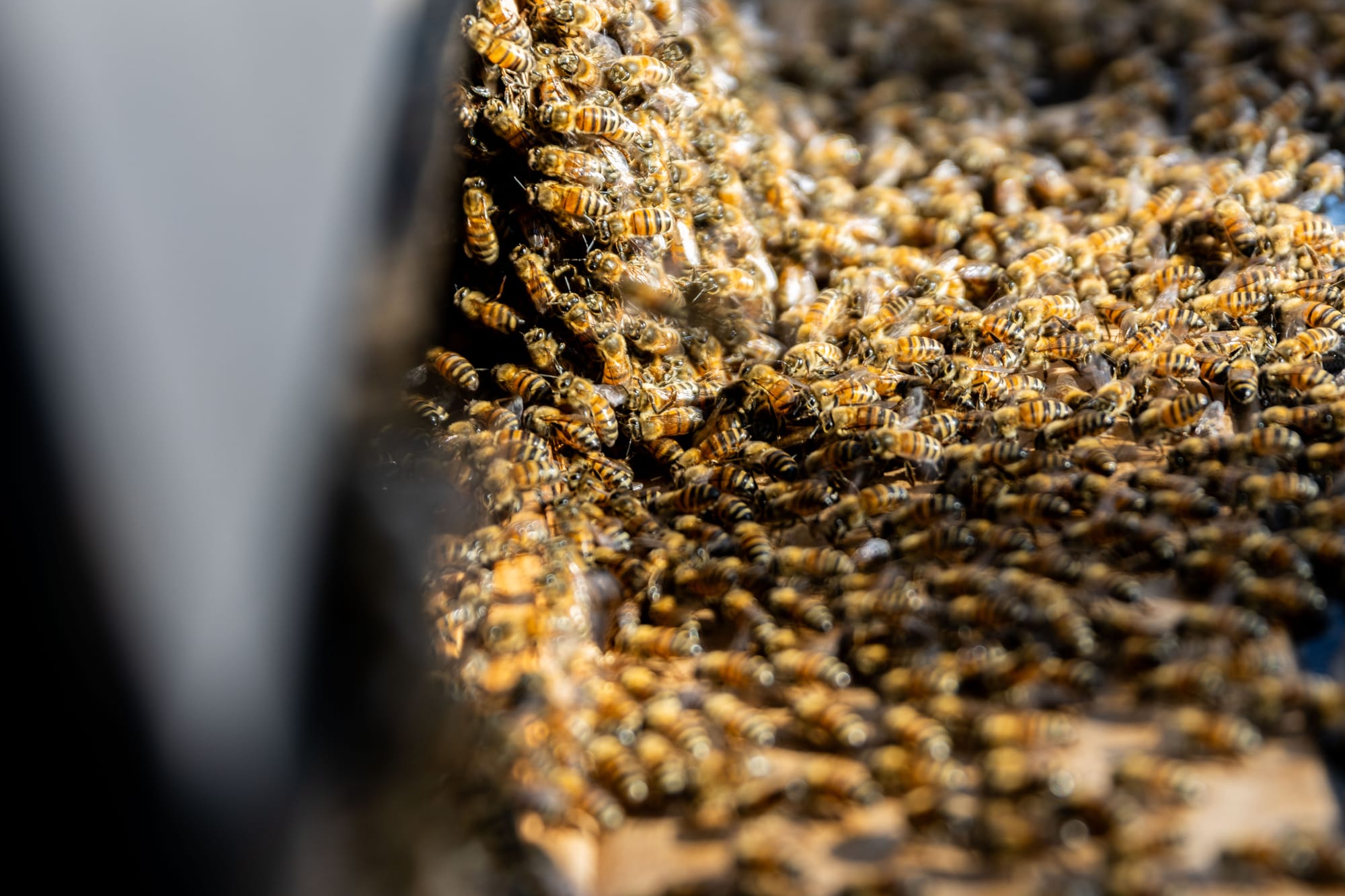 When he was working the markets with his instructor, people would come to him asking to remove their bees. Other bee removal companies and exterminators would even go to him because although the companies advertised live bee removals, they didn’t know where to bring the colonies after. He said they’d hand him boxes with crushed honeycombs and dead bees.