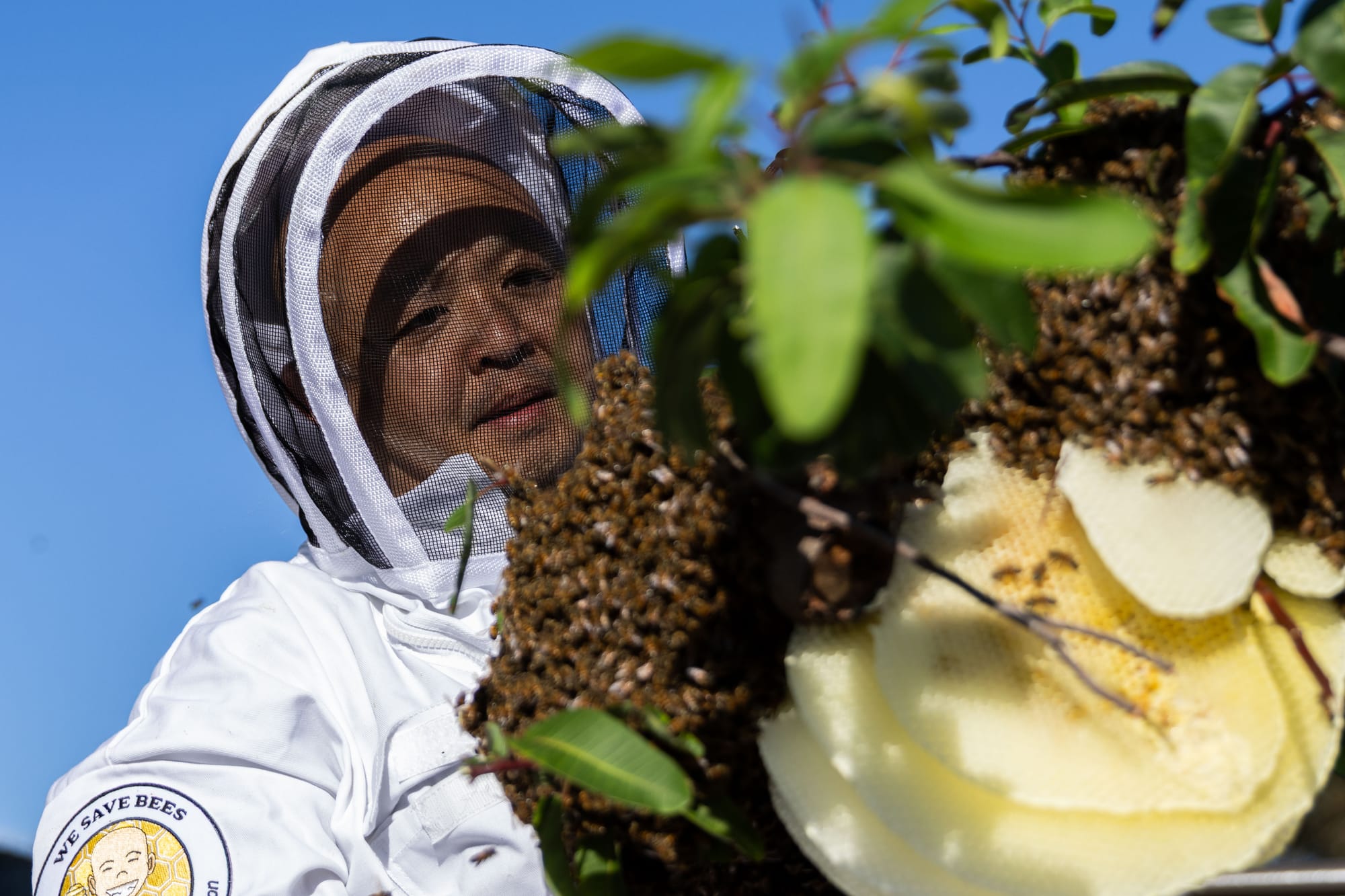 Bowie, like Luong, also fell in love with bees when they moved into her shed. She wanted to keep the bees on her property so they could pollinate her fruit trees, and We Save Bees were the most responsive to her request.